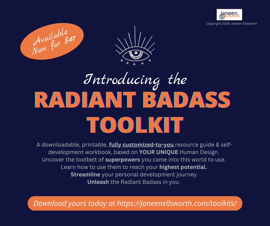 Want to learn what ALL the Gates in your Human Design chart mean? Order your customized RADIANT BADASS TOOLKIT today, direct from my website, and start wielding your powers in the highest vibration so you can reach your full potential & live a more satisfying life.